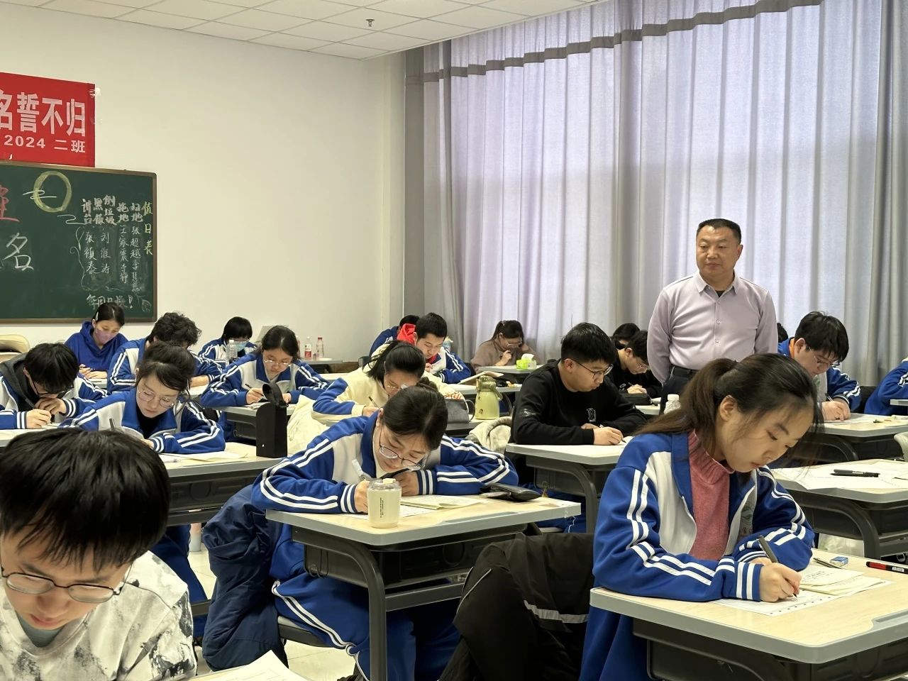 為確保一??荚図樌M(jìn)行,我校提前部署、精心組織,各部門通力協(xié)作,全力保障考試工作的嚴(yán)謹(jǐn)與高效??记?,穆樹鵬校長主持召開考務(wù)會(huì),明確監(jiān)考職責(zé),強(qiáng)調(diào)考試紀(jì)律,嚴(yán)格執(zhí)行考試程序,精細(xì)化管理考試環(huán)節(jié),堅(jiān)決杜絕監(jiān)考違紀(jì)與考生作弊現(xiàn)象,以最嚴(yán)謹(jǐn)?shù)膽B(tài)度對待此次模擬考試。